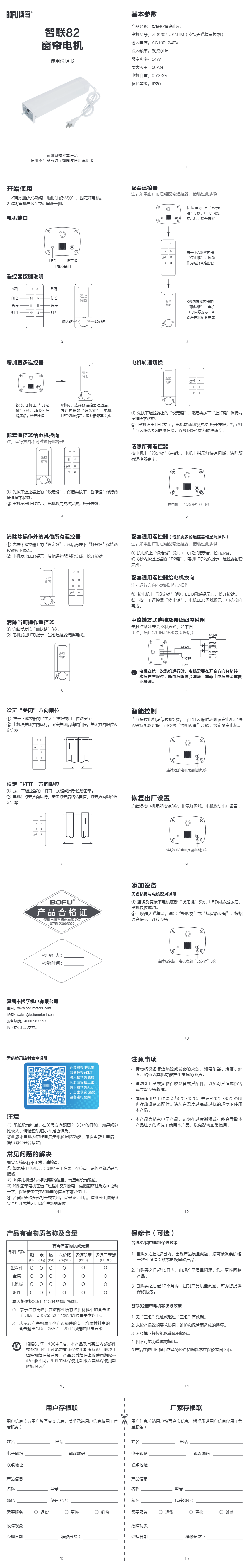 智联82窗帘电机 ZL8202-JSNTM安装调试说明书
