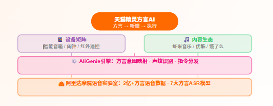 目前主流智能音箱厂商都在布局方言,但各家覆盖深度差异很大。天猫精灵的差异化在于**阿里方言数据库的积累**和**达摩院语音模型的直接赋能**,而竞品更多依赖第三方语音接口: