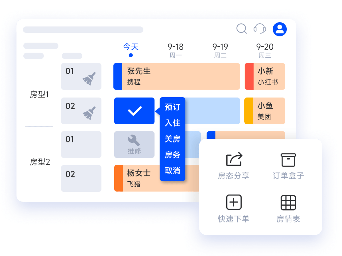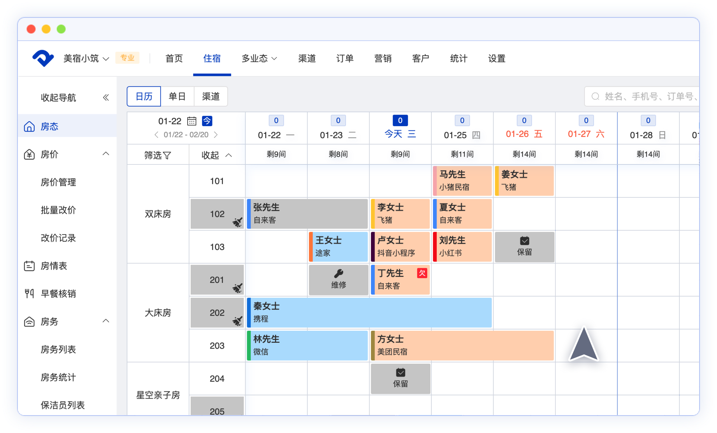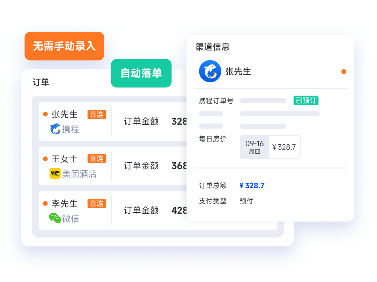 直连所有OTA平台(携程、美团、飞猪、途家、小红书、木鸟、booking等)